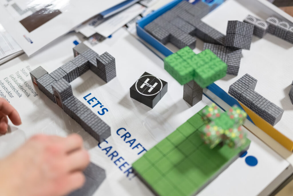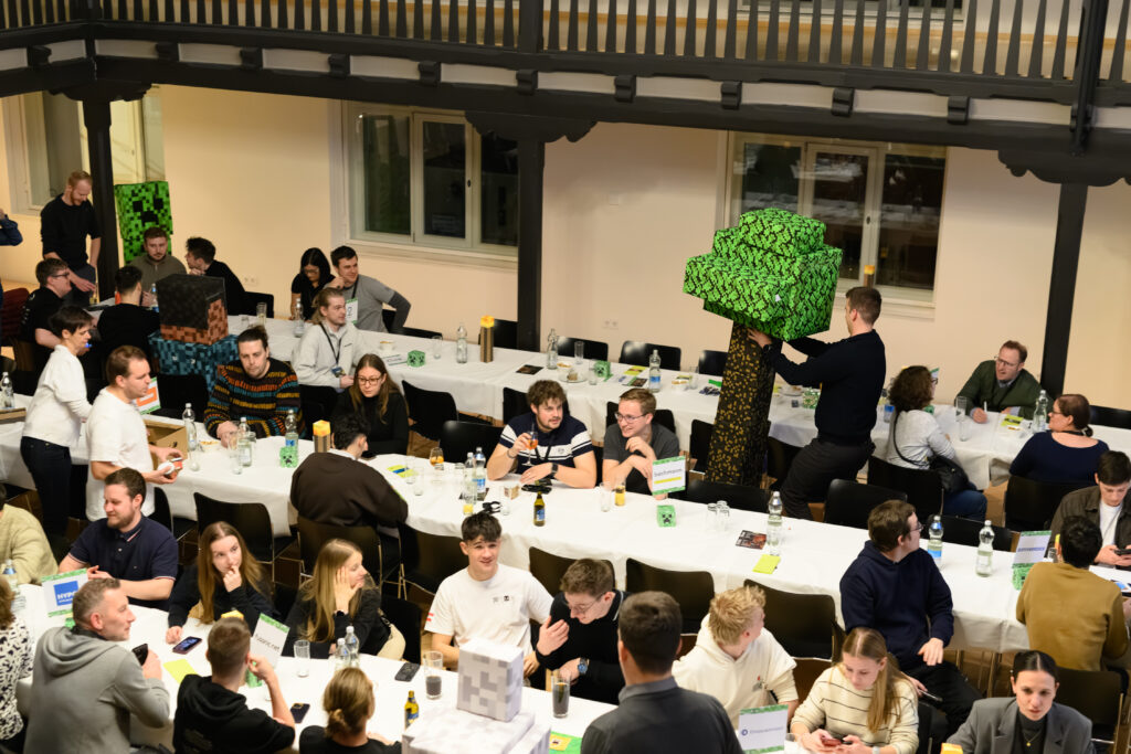 Minecraft steht für Kreativität, Technik, lösungsorientiertes Denken und Teamwork – genau die Kompetenzen, die in MINT-Berufen gefragt sind. 14 führende Vorarlberger Unternehmen gestalteten für das Netzwerk-Event kurzweilige Minecraft-Aktionen, die zum Mitmachen einluden und einen lockeren Einstieg ins Networking mit den Studierenden schafften. So gab es etwa Baumeister-Challenges, Mini-Piston-Quests, Minecraft-Speedcodings, Statik-Tests und Block Stacking Tasks, die zu einem interaktiven Erlebnis und einer entspannten Atmosphäre beitrugen.