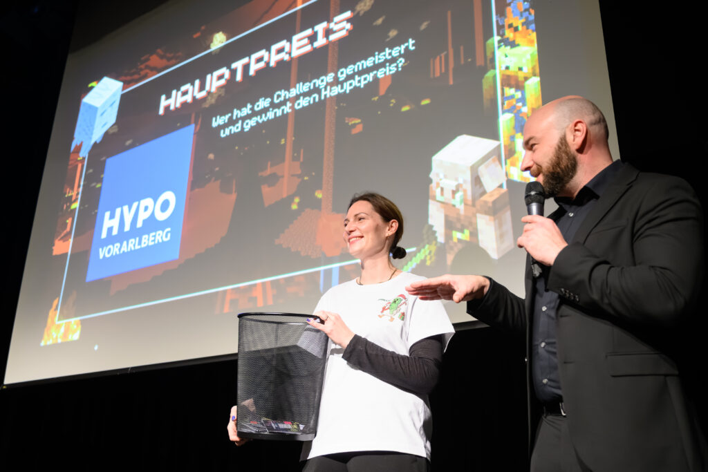 Die zahlreichen Highlights des Programms versprachen auch heuer wieder einen gelungenen Abend. Nach einem feinen Apéro in gemütlicher Stimmung und einer kurzweiligen Begrüßung durch das CHANCENLAND VORARLBERG-Team gab es regionale Köstlichkeiten bei einem reichhaltigen Buffet. Dazwischen stellte Poetry Slammer Marvin Suckut jedes Unternehmen humorvoll und pointiert vor. In der anschließenden Unternehmensausstellung bewegten sich die Studierenden zwischen den verschiedenen Minecraft-Aktionen. Ein Stempelpass motivierte zum Mitmachen und ermöglichte die Teilnahme am Gewinnspiel, bei dem als Hauptpreis ein Gutschein über 200 Euro winkte, der dankenswerterweise von der Hypo Vorarlberg Bank bereitgestellt wurde. Der inspirierende Abend bot zahlreiche Gelegenheiten, um Kontakte und Gespräche zu vertiefen.