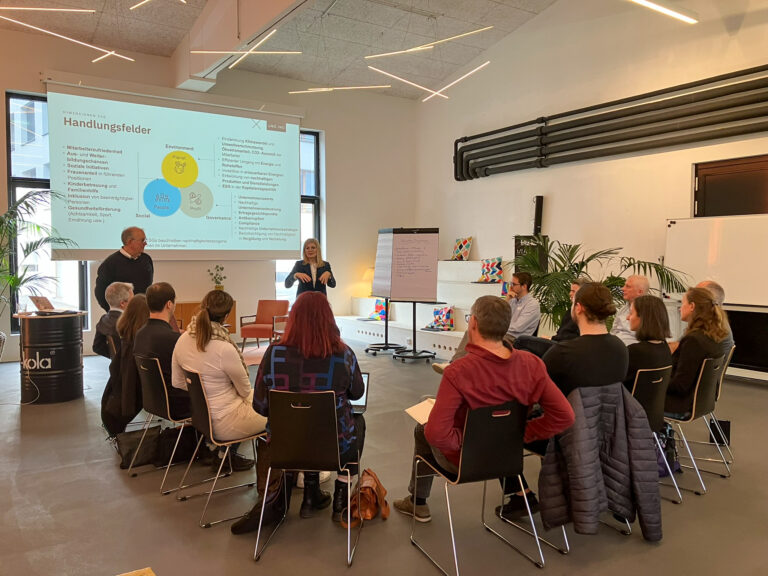 Der Abschlussworkshop dient dem fruchtbaren Austausch, dem Aufbau von Kooperationen durch Vernetzung und der Weiterentwicklung der eigenen Nachhaltigkeitsstrategie zur gemeinsamen Begegnung von Nachhaltigkeitsherausforderungen.