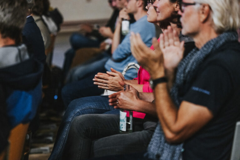 Die Statements und Fragen des Publikums verdeutlichten die Herausforderungen, mit denen sich die Textilindustrie auf dem Weg zu einer möglichen Circular Economy gegenübersieht. Jedenfalls wurde bei einer kleinen Stärkung noch sehr rege über zukünftige Chancen und Risiken in den Hallen der CampusVäre diskutiert.