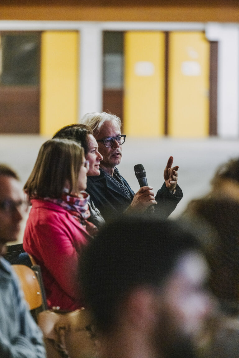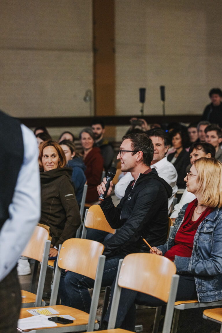 Nach der Firmenführung wurden die Teilnehmenden per Shuttlebus zur CampusVäre gebracht, wo die Themenreihe beim Festival zur Entwicklung der Zukunft zu Gast war. Etwa 70 Interessierte hörten nach der Begrüßung durch Hausherrin Bettina Steindl (CampusVäre) zwei Fachvorträge und konnten sich aktiv an der anschließenden Diskussion beteiligen.
