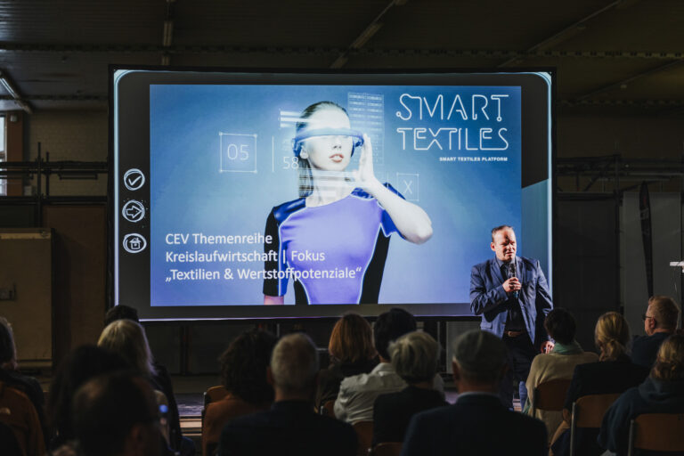 Am 09. Oktober 2023 fand das zweite Event der CEV-Themenreihe Kreislaufwirtschaft mit dem Fokus „Textilien und Wertstoffpotenziale“ statt. Den Teilnehmenden wurde an diesem Nachmittag ein tiefer Einblick in die textile Wertschöpfungskette und die anstehenden Herausforderungen aufgrund der Entwicklungen auf EU-Ebene gegeben.
