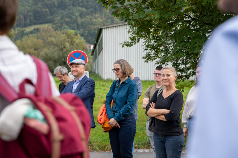 Zu Beginn konnten die Teilnehmer*innen mittels Shuttlezubringer eine Firmenführung bei carla Tex in Hohenems erleben, wo sie von Karoline Mätzler und dem Carla-Team spannende Einblicke in die Arbeitsweise und das internationale Geschäft von carla Tex im Bereich der Textilwiederverwertung bekamen.